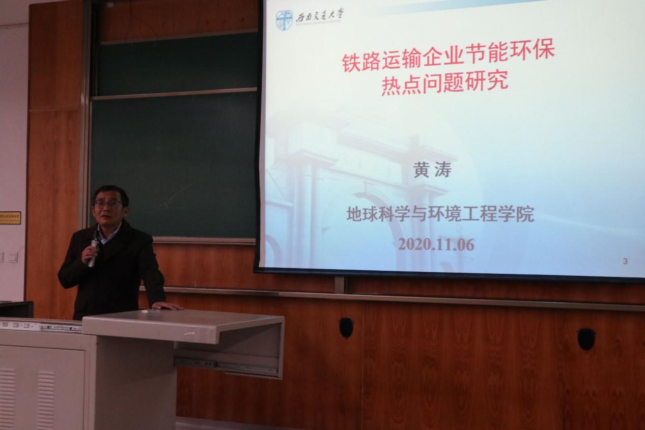 本次讲座主题虽然为“铁路运输企业节能环保热点问题研究”,但黄涛教授考虑到在场同学中有不少大一、大二的本科生,在进行专业学术研讨的同时也向到场同学介绍了环境工程类专业优势以及升学方向。