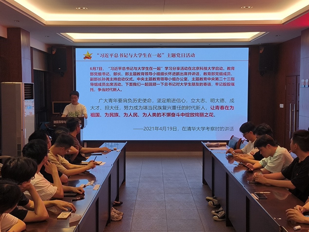 为深入学习贯彻习近平新时代中国特色社会主义思想和党的二十大精神,深刻领会习近平总书记在学习贯彻习近平新时代中国特色社会主义思想主题教育工作会议上的重要讲话精神,响应学校教育引导号召,不断增强“四个意识”、坚定“四个自信”、做到“两个维护”。2023年6月9日晚7时,本科测绘党支部于X4520组织开展“习近平总书记与大学生在一起”主题党日活动,主要包括“习近平主持中央政治局第五次集体学习并发表重要讲话”以及【中华人民共和国教育部】教育部召开非中管直属高校主题教育交流座谈会内容,任纪州同志主持本次活动,本次活动共有22名党支部成员参加。