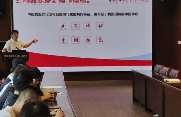 党委委员胡卸文教授应邀为地质党支部讲党课,以“中国式现代化与高质量发展”为题,对中国式现代化进行了全面的解读。