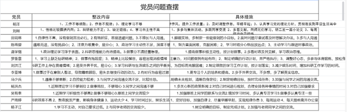然后,党支部全体党员进行了党员查摆和批评与自我批评,结合自身实际情况认真反思了当下存在的问题和不足,并针对问题提出了相应的整改措施,再由其他党员同志对其进行批评,最后根据查摆问题列出问题清单,包括整改内容和具体措施。