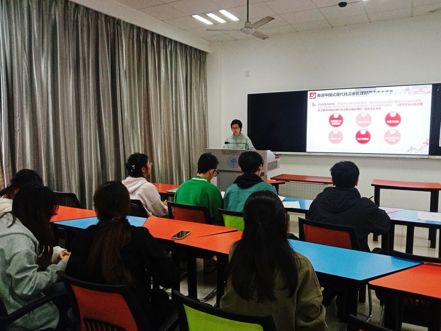 最后支部成员也分享了深入学习《推进中国式现代化需要处理好若干重大关系》的所思所悟,以及请假的支部成员会后分享了学习习近平总书记近期重要讲话重要指示精神的心得。通过此次主题党日活动,本科消防党支部党员们通过此次主题党日活动,不断深入学习习近平新时代中国特色社会主义思想,把握习近平总书记有关最新重要讲话重要指示的精神,切实认识到党员教育管理工作的重要性!