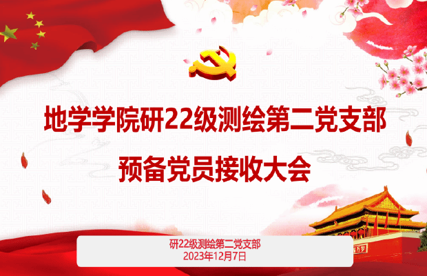 2023年12月7日19:30,研22级测绘第二党支部于X4129召开预备党员接收大会,对是否接收令狐文娅同志为预备党员问题进行讨论和表决。