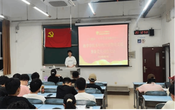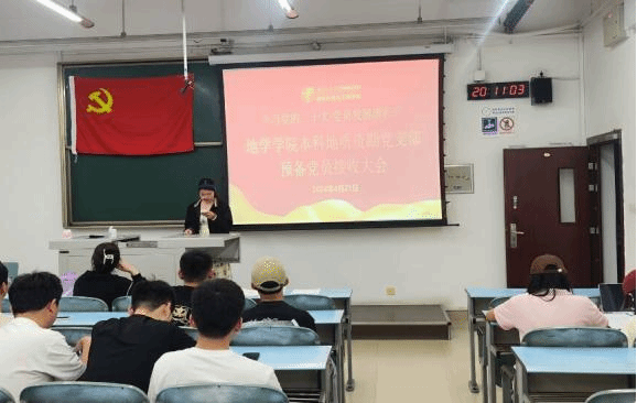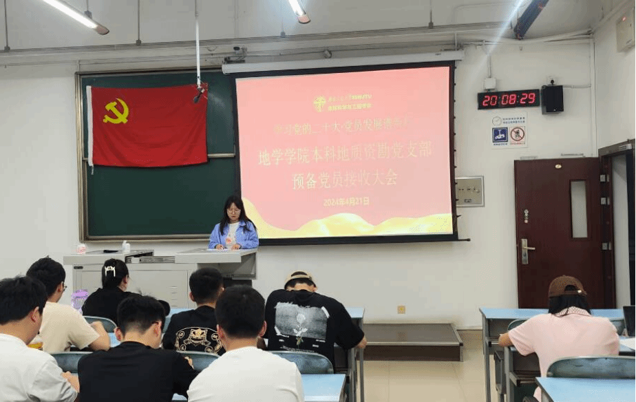 本科地质资勘党支部于2024年4月21日晚上19时30分在X2323召开2024-01期预备党员接收大会,本次大会的议题:讨论是否同意接收张轶飞、孙钰娴、郭旭、马啸阳、冯佳宇、吴祠宇6名同志为预备党员。本次大会由本科地质资勘党支部书记刘伟婷同志主持。
