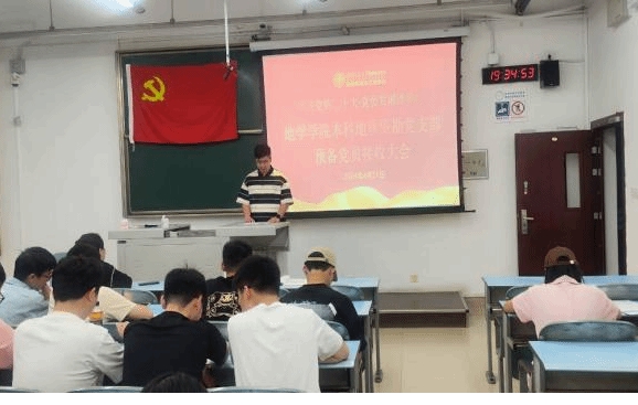 会议伊始,徐嘉茜同志清点到会人数。本科地质资勘党支部共有党员44名,今天出席会议的党员30名。有表决权的正式党员实到会人数超过应到会人数的一半,符合组织规定,大会有效,大会开始。