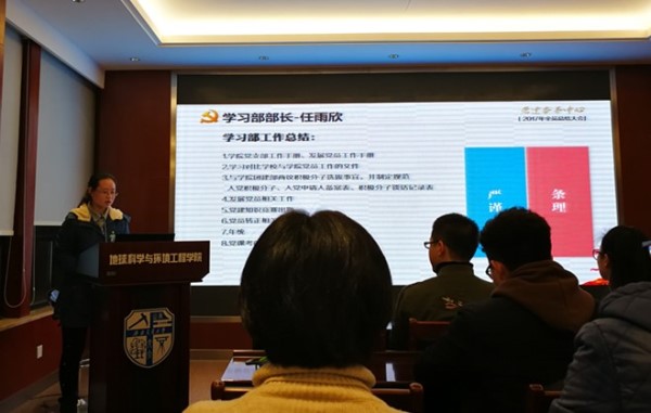 会上各部门干事、部长及负责该部门工作的主任、主任助理精炼地介绍了本学期所负责的各项事务及取得的成效。学习部主要负责了党员信息档案管理统计,入党积极分子及发展对象选拔以及组织开展“学习十九大”知识竞赛相关;监管部则负责对接各党支部,做好活动监督及记录;活动部组织安排学院本学期大中型的会议及几次竞赛活动,例如:“书写十九大”硬笔书法比赛及“青春遇上十九大,创意展现新思想”等;宣传部则负责网页新闻的更新及微信公众号的更新,并开创了官方QQ,开拓了宣传渠道。各部门认真负责,出色地完成了党建事务中心这一学期的各项工作。
