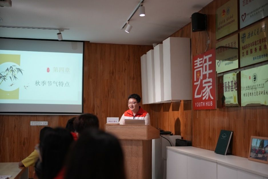 临近小满,本次公益课堂主题为二十四节气,主要分为知识分享、游戏互动和手工制作三个部分。活动伊始,两位同学给孩子们分享了关于二十四节气的知识,通过生动的图片分析各种节气现象,向孩子们介绍了二十四节气的由来、特点和习俗。