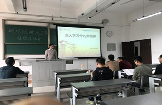 11月8日下午,地球科学与环境工程学院研2016级地质二班党支部在9207室召开学习会,集中学习党的十九大精神。