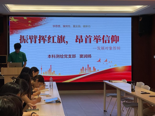切实做好2024年发展党员工作,切实提高党员发展质量,本科测绘党支部于2024年9月22日在犀浦校区X4520开展2024-02期发展对象答辩大会,大会由胡嘉祎同志主持,陈荩娜老师出席并指导大会,本科测绘党支部共有党员19名、正式党员7名,有18名党员、7名正式党员出席会议,超过有表决权党员数量的一半,会议选举结果有效。