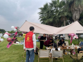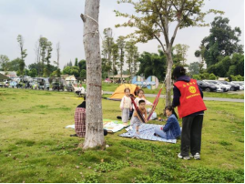 周末的蜀绣创意公园往往是附近人们户外休闲娱乐的场所,随着草坪上越来越多的帐篷,往往也预示着乱认垃圾的行为将会变多,为此,志愿者们对公园内露营的家庭进行了文明劝导,各个家庭积极响应,保证绝不乱扔垃圾,返回时将自行带走,共同维护公园美丽的环境。