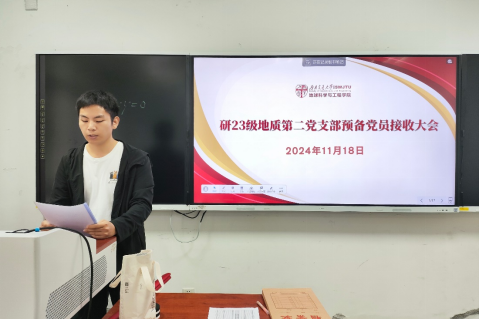为切实做好2024年发展党员工作,进一步提高党员队伍的素质与活力,提高党员发展质量,2024年11月18日,研23级地质第二党支部在X4127教室举行预备党员接收大会。此次大会的主要议题是讨论关于接收张帅同志为中共预备党员的相关事宜。