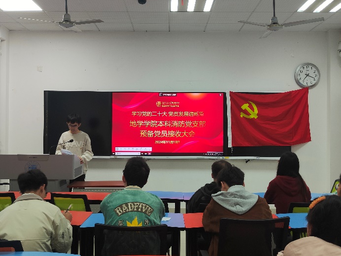 为了切实做好2024年发展党员工作,进一步提高党员队伍的素质与活力,提升党员发展质量,本科消防党支部于2024年11月14日在X4136教室举行了一次预备党员接收大会。此次大会的主要议题是讨论接收周爽、付君洋和李其钟三位同志为中共预备党员的相关事宜。