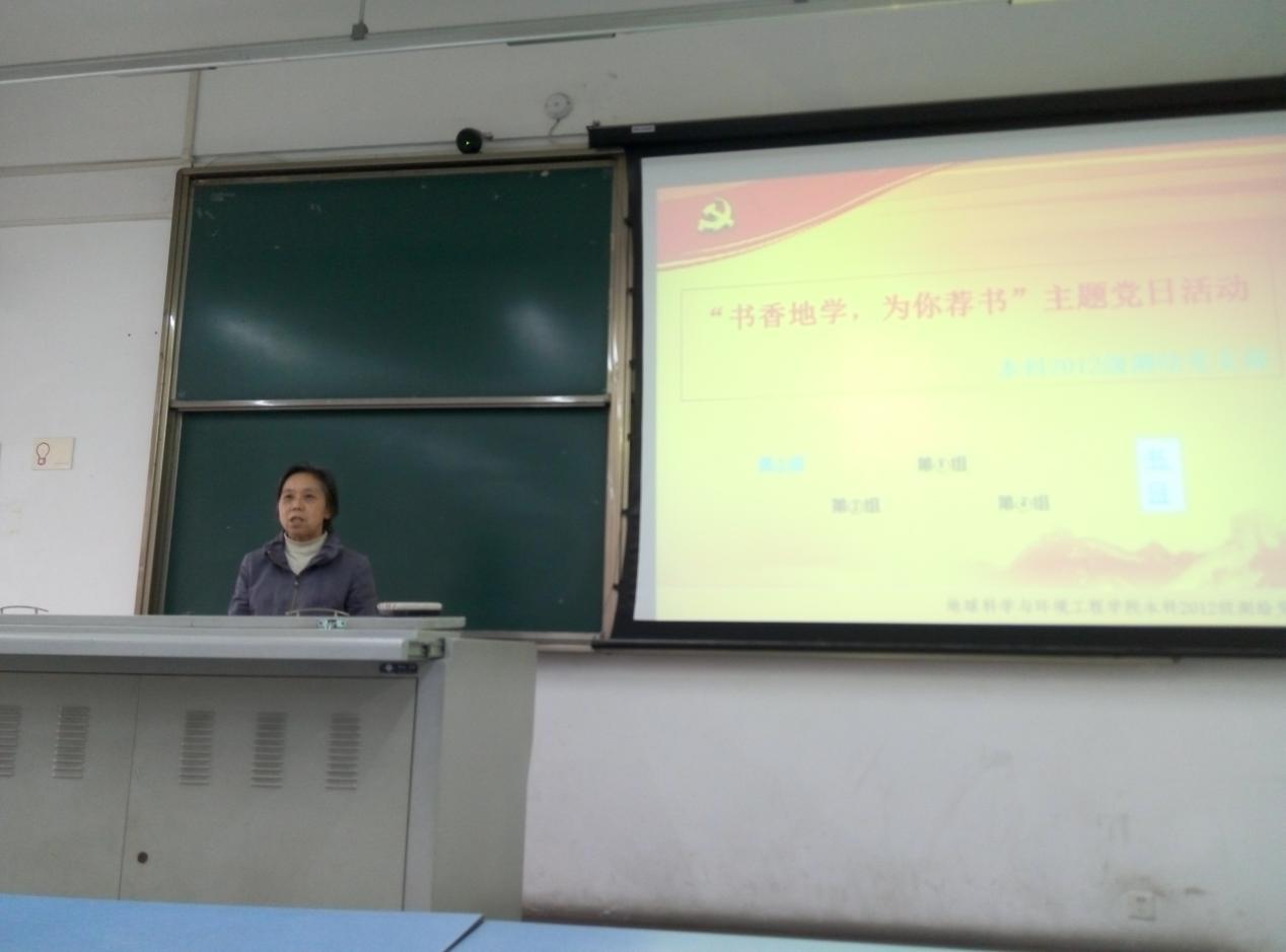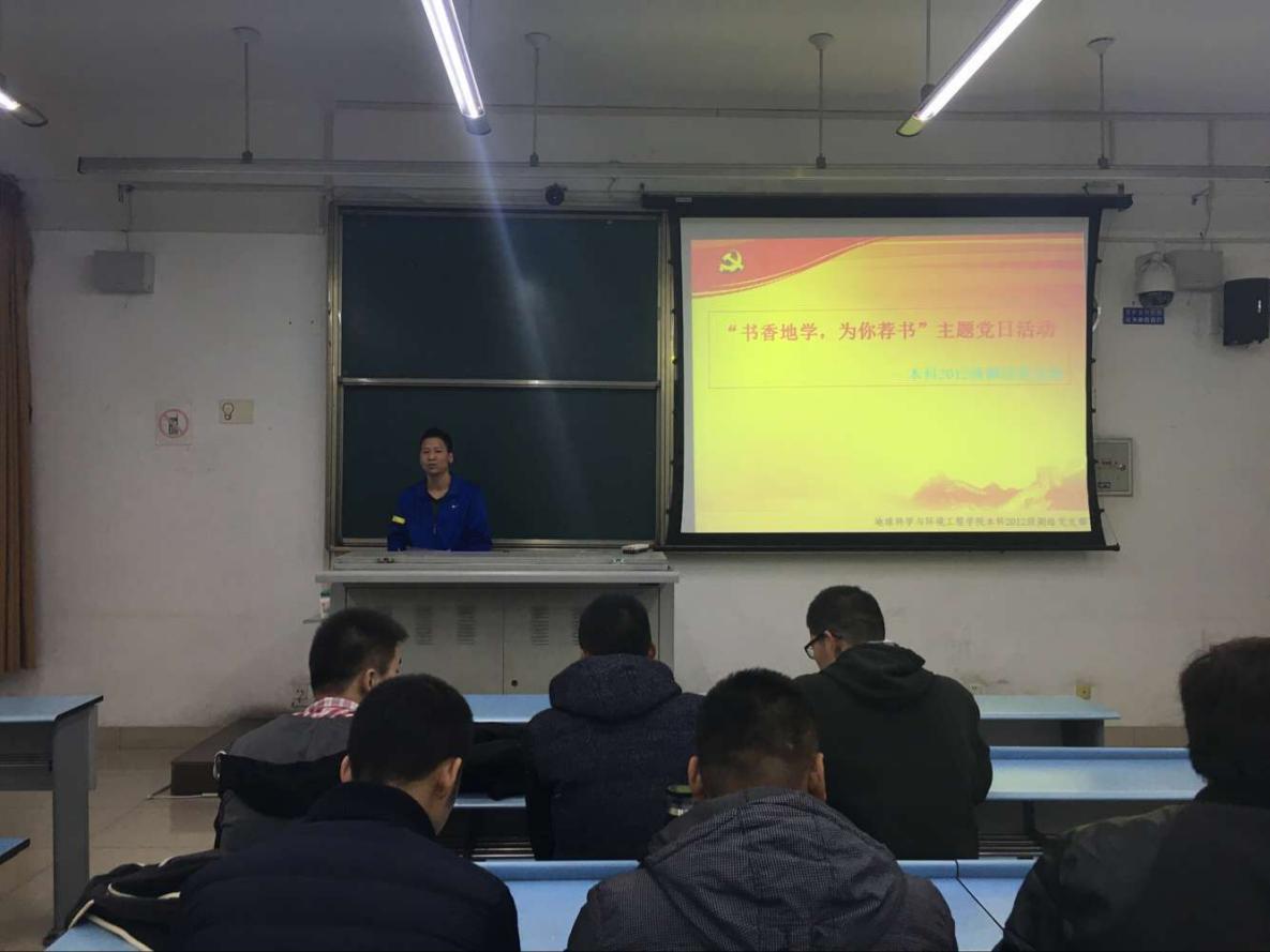 本科2012级测绘党支部在X2534召开了经典阅读主题党日活动---“书香地学,为你荐书”党日活动,会议由姚新平主持,陶永全记录,参会人员有支部指导老师冯丽梅、支部全体党员及积极分子。