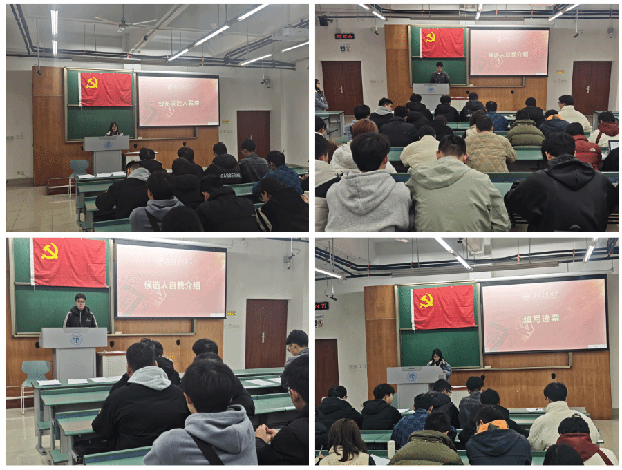 随后,刘伟婷同志介绍了本科地质资勘党支部委员会候选人廖望和朱梓宁同志的基本信息情况。然后,支部书记候选人廖望和支部副书记候选人朱梓宁同志分别就自己在思想、学习、工作、生活四个方面的表现进行了介绍,并表达了自己担任支部委员的强烈意愿。参会党员对支部委员候选人的综合表现情况进行充分讨论并采取无记名投票进行表决。