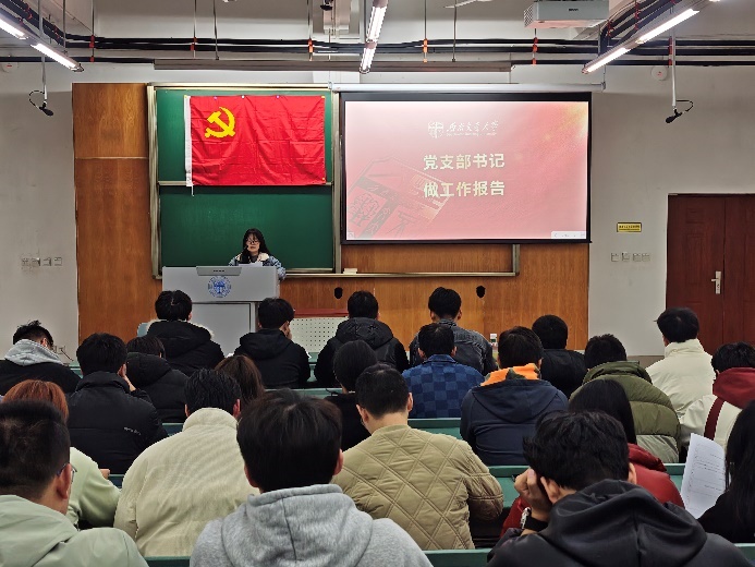 其次,上届党支部书记刘伟婷同志代表支委会进行了工作报告,包括支部教育党员情况、管理党员情况、宣传师生情况、支部工作实效、支部工作亮点等内容。总结过去,展望未来,为支部新一年的工作注入了全新的动力。