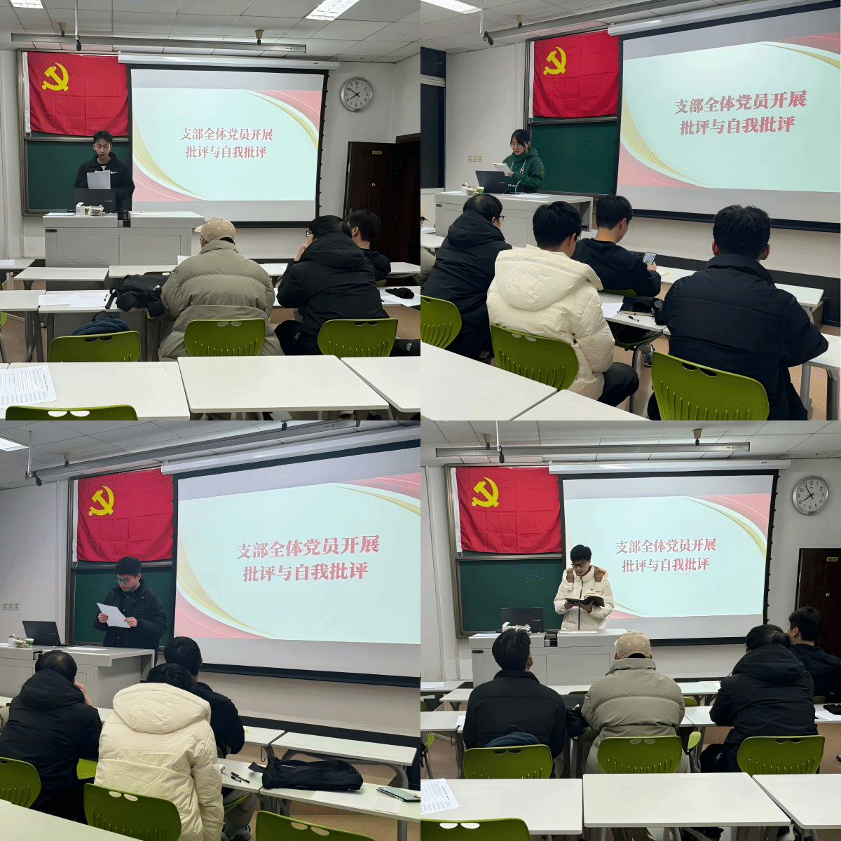 在批评与自我批评环节,党员们以“团结—批评—团结”为原则,围绕思想、作风、能力等方面展开交流。支委成员从理论学习深度、服务意识等方面进行自我批评,并虚心接受其他党员的意见。随后,各位党员依次发言,既敢于“揭短亮丑”,又注重方式方法,既肯定成绩,又直面问题。例如,党员林星杰同志表示:“在科研攻坚中存在急躁情绪,需加强耐心与团队协作”;党员荣江坤同志则建议支部进一步丰富学习形式,增强青年党员参与感。整个过程气氛严肃认真,又充满团结互助的氛围。