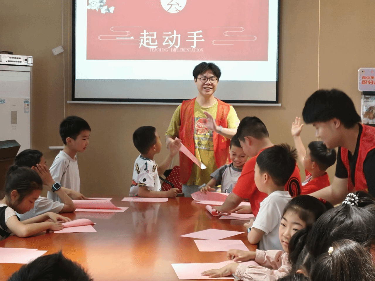 随后,志愿者为大家科普剪纸文化的相关知识,并带领小朋友们动手制作剪纸。每位小朋友都在志愿者们的帮助下进行折叠、绘图和剪裁,享受着传统手工艺术带来的魅力与乐趣。