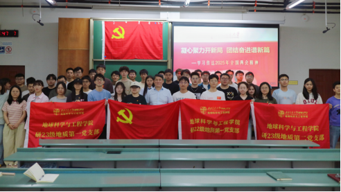 2025年4月17日,为深入学习贯彻2025年全国两会精神,将国家战略部署转化为地质工作的行动指南,并结合全民国家安全教育日主题,强化党员责任意识与使命担当,维护国家安全稳定,研22级、23级地质联合党支部组织支部全体成员于犀浦校区X4155教室参与“凝心聚力开新局 团结奋进谱新篇”主题党日活动。