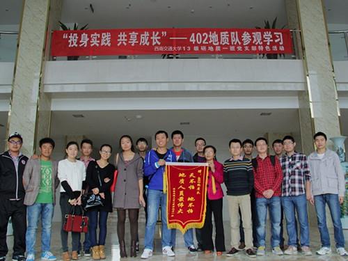 2013年10月27日下午2点,由地球科学与环境工程学院和四川省地矿局402地质队联合主办,2013级地质1班承办的党支部“投身实践,共享成长”活动,在成都市郫县成灌西路45号顺利进行。这次活动为本班党员与专业工作人员提供一次交流的机会。
