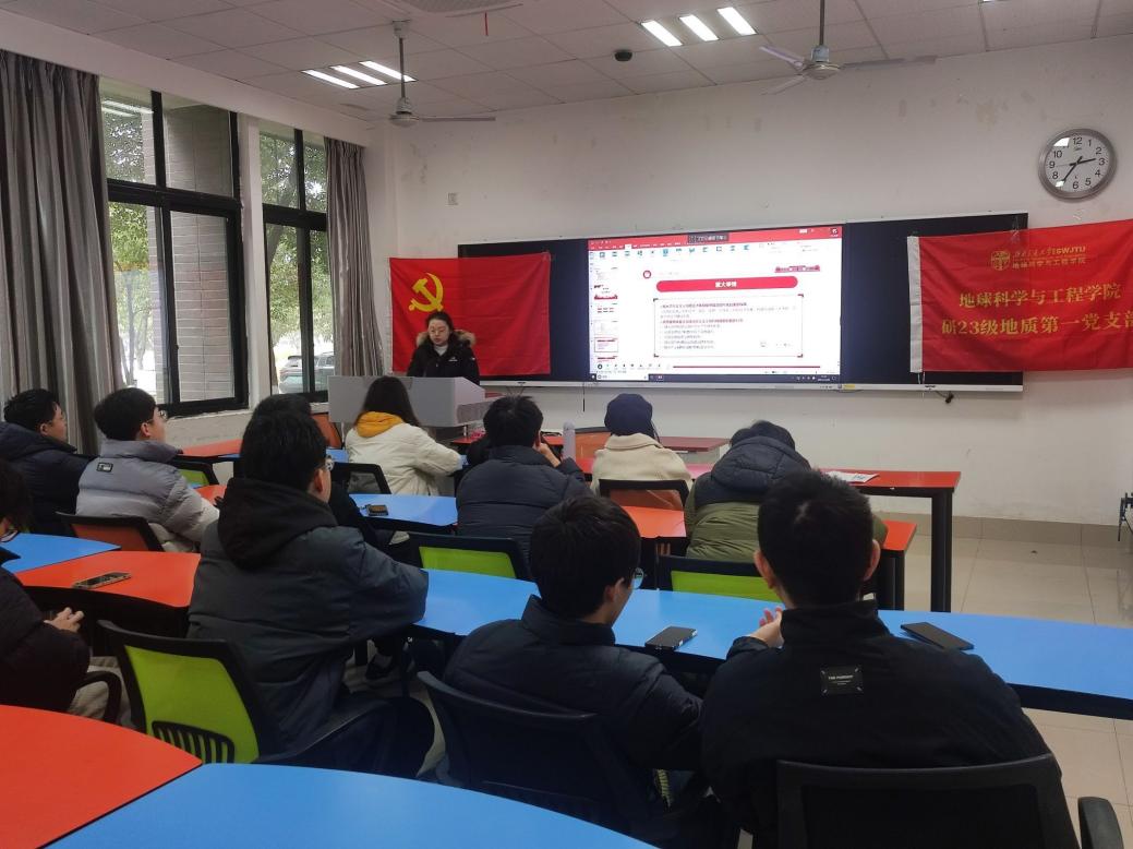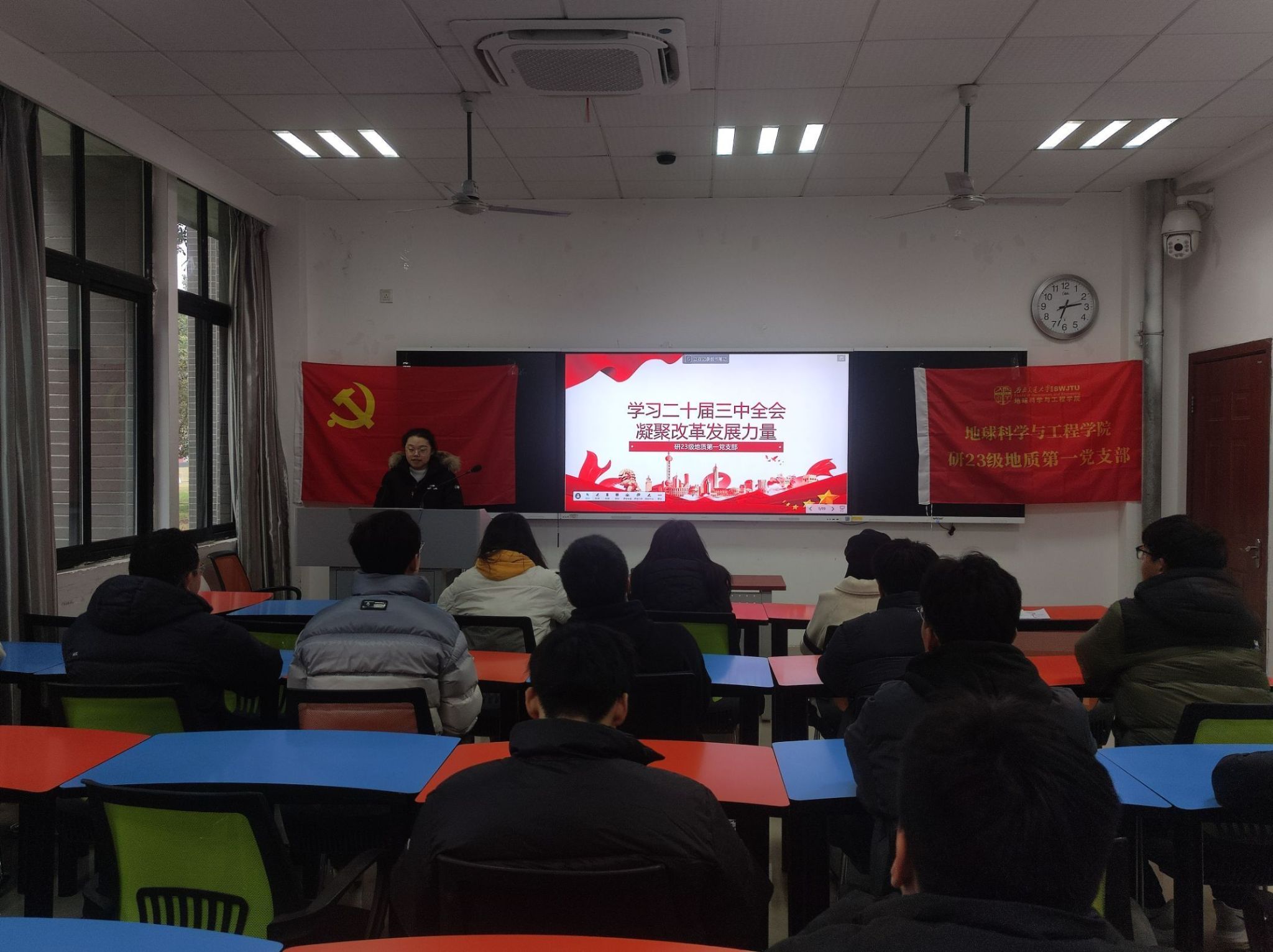 2024年12月20日下午14:30时,研23级地质第一党支部于X4135教室顺利召开了“全会精神引领路,责任担当谱新篇”主题党日活动,本次活动旨在学思践悟党的二十届三中全会精神,进一步增强支部成员的责任担当。本次党日活动由党支部书记王睿同志主持并领学,支部成员总计18人与会。