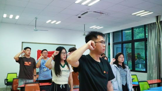 经无记名投票表决,同意朱茹洁同志为中共预备党员的有效票数为15票,不同意的有0名,弃权的有0名,同意朱茹洁同志按期转为中共正式党员。党支部书记对其表示祝贺,并鼓励她牢记党员身份,不忘初心,继续为党的事业贡献力量。朱茹洁同志随后对大会决议进行了表态发言,表明了自己对党的赤诚忠心。参会全体成员在黄子奇同志的带领下重温入党誓词。