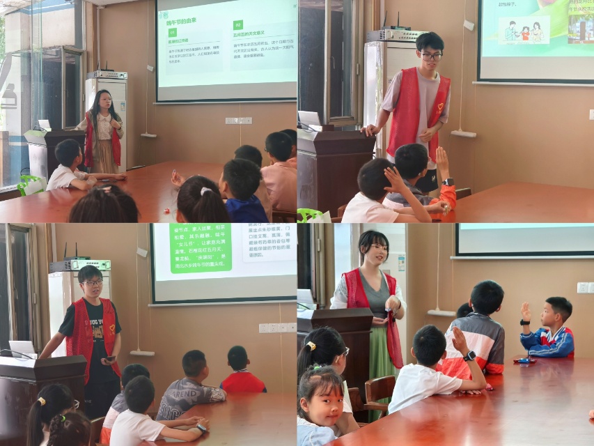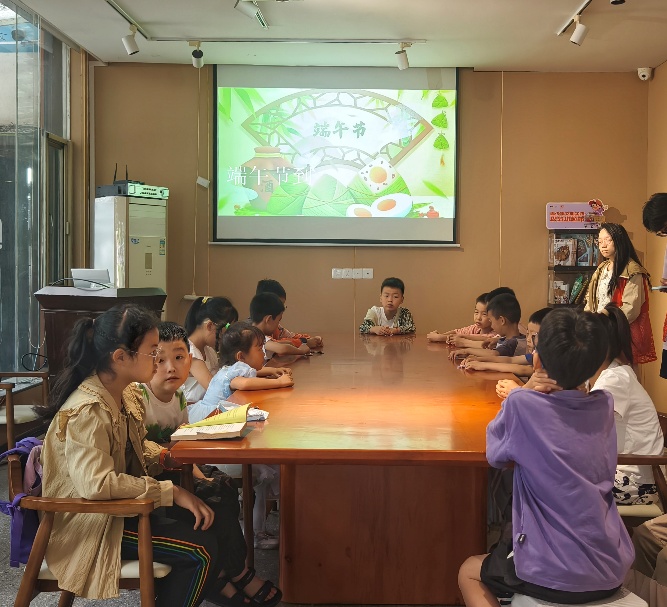 活动伊始,一段端午节文化宣传片拉开了序幕。视频生动展现了端午节的起源传说、传统习俗及其文化意义,迅速吸引了在场小朋友们的注意力。随后,志愿者以图文并茂的方式,系统讲解了端午节的三大起源说:纪念屈原说、古代巫术说以及天文历法说。在互动环节中,小朋友们踊跃发言,分享各自所知道的端午习俗。