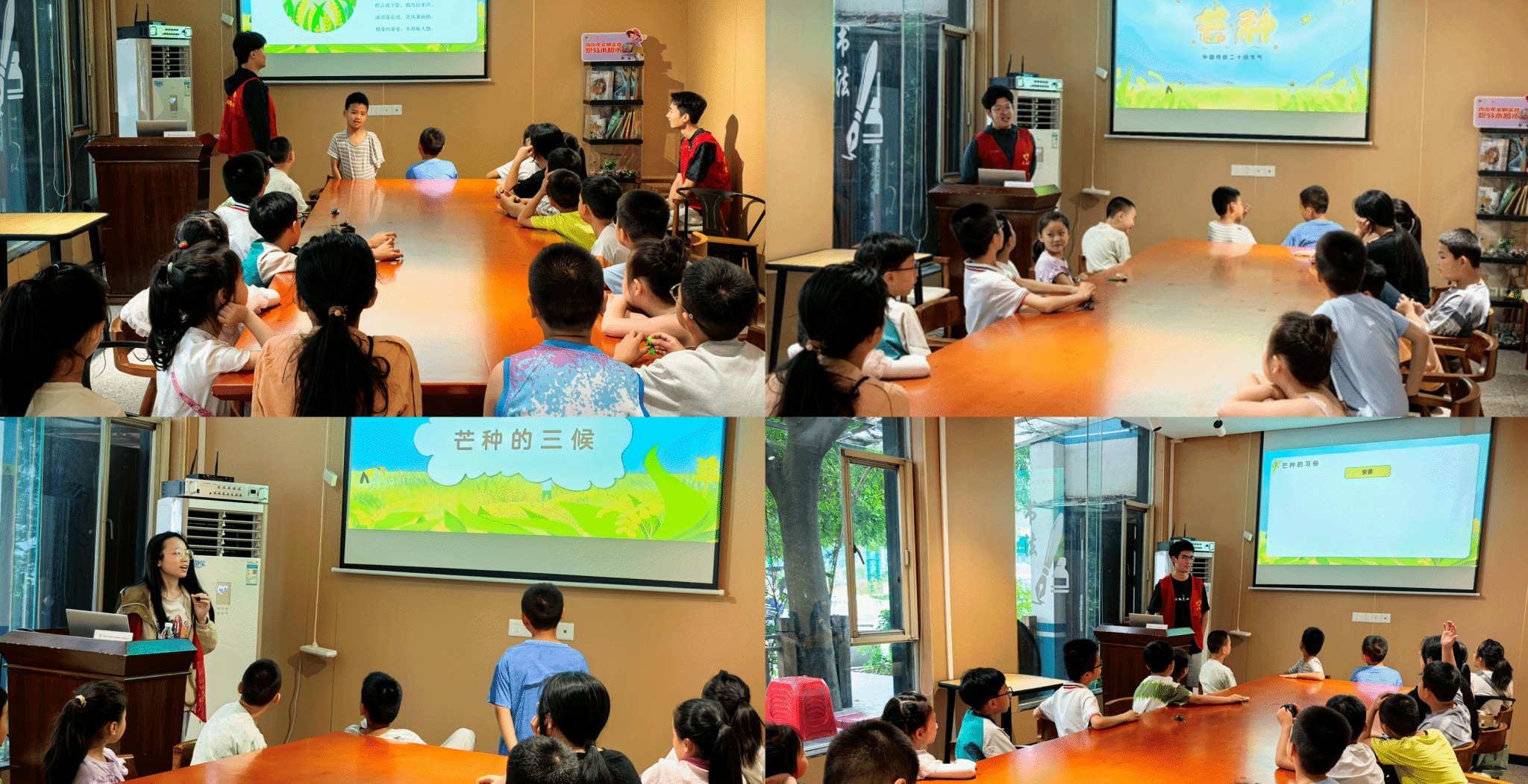 活动在悠扬且清脆的《节气歌》中正式拉开帷幕。“春雨惊春清谷天……”在志愿者充满激情与活力的带领下,小朋友们齐声背诵,那整齐而响亮的声音,在社区中久久回荡。志愿者借助生动的图文,从芒种节气的由来讲起,详细介绍了芒种的习俗,像安苗祈福的美好寓意、打泥巴仗的欢乐趣味,还有煮青梅的独特风雅,以及“一候螳螂生,二候鵙始鸣,三候反舌无声”的物候变化,让孩子们全方位认识芒种。期间,志愿者还带领小朋友们诵读芒种相关诗词,在诗词韵律中感受古人对节气的细腻观察与情感抒发。自此传统习俗不仅是书本上的文字,而且是鲜活有趣的文化符号。