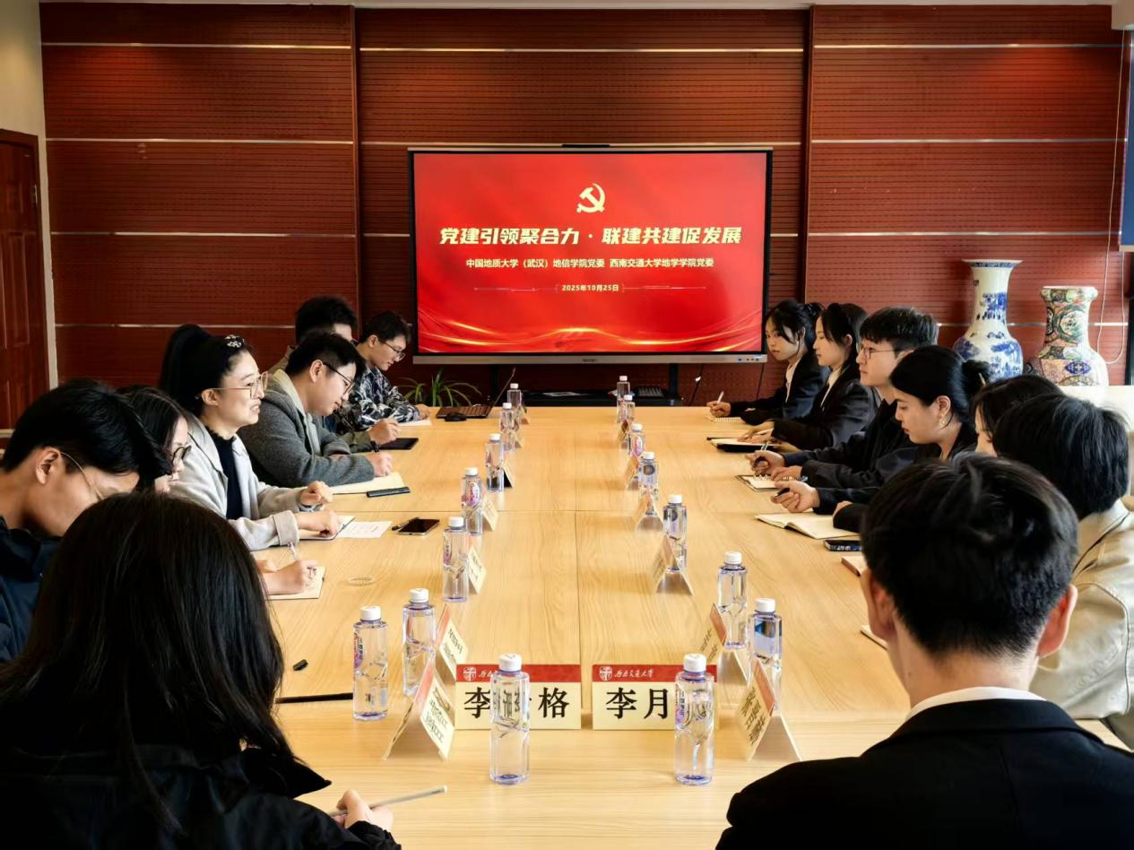 2025年10月25日,中国地质大学(武汉)地理与信息工程学院教师张恪、郭松直带领学生党建骨干成员,与我院开展学生党建专题交流。学院专职组织员李晓宇、学生党建专项负责人文强及学生党建事务中心骨干成员参会,双方围绕“党建引领聚合力·联建共建促发展”主题深入研讨。