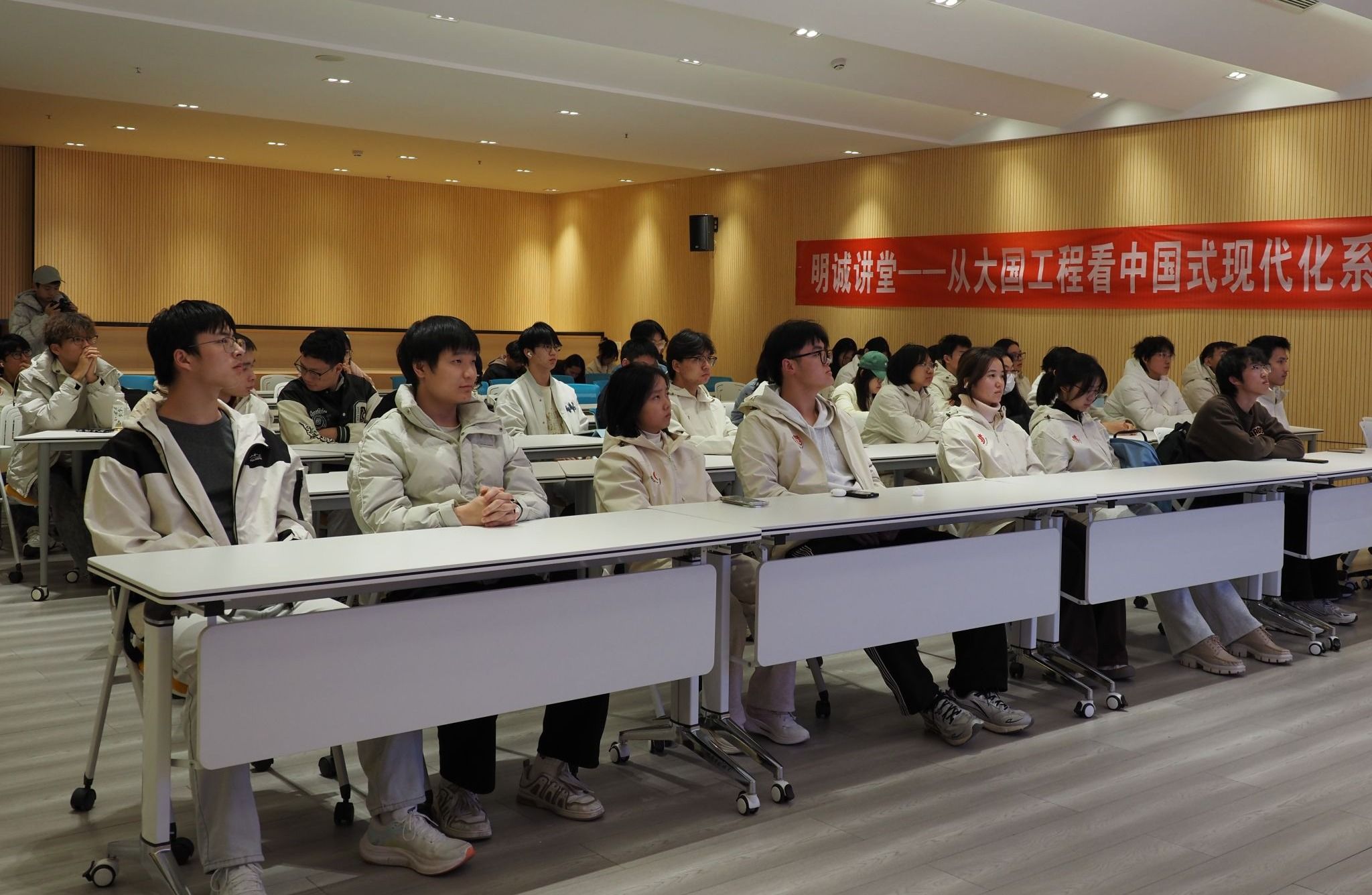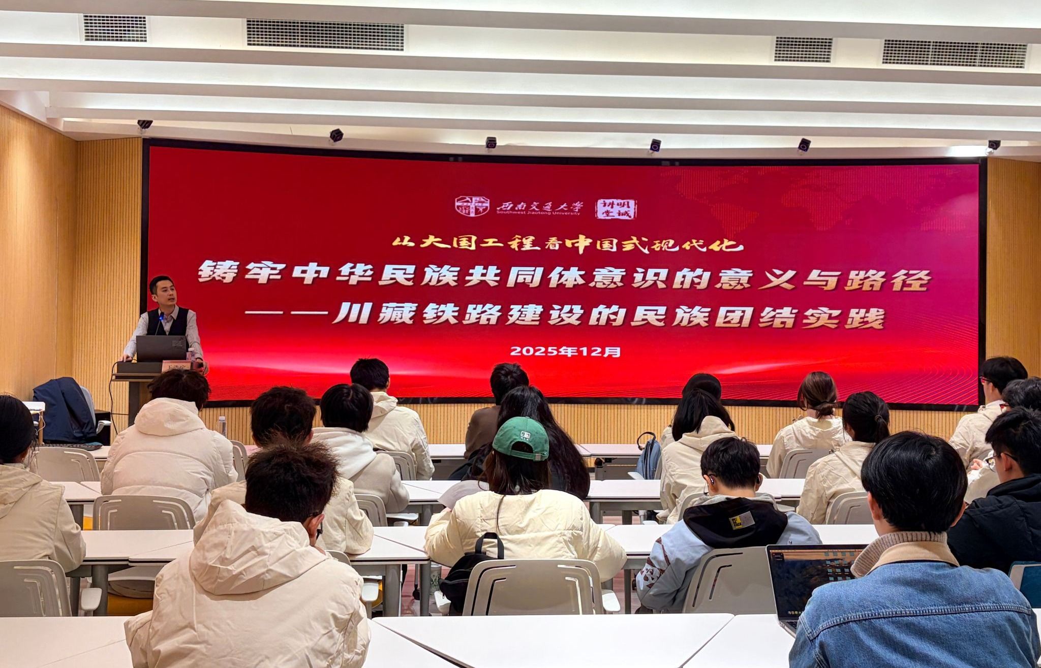 承办的“明诚讲堂”从大国工程看中国式现代化专题讲座在犀浦校区K8教学楼拉开序幕。本次讲座特邀马克思主义学院王浩宇老师,讲座题目为《铸牢中华民族共同体意识的意义与路径——从CZ铁路看民族团结的时代实践》,校内20多个学院的80余名师生参与本次活动。