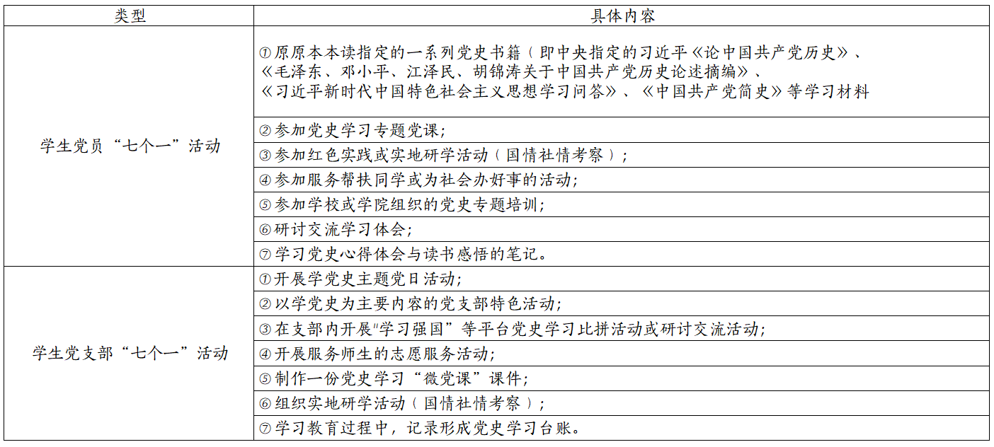 附:党委学工部发布的“学党史,强信念,跟党走”学生党支部和学生党员“七个一”活动要求