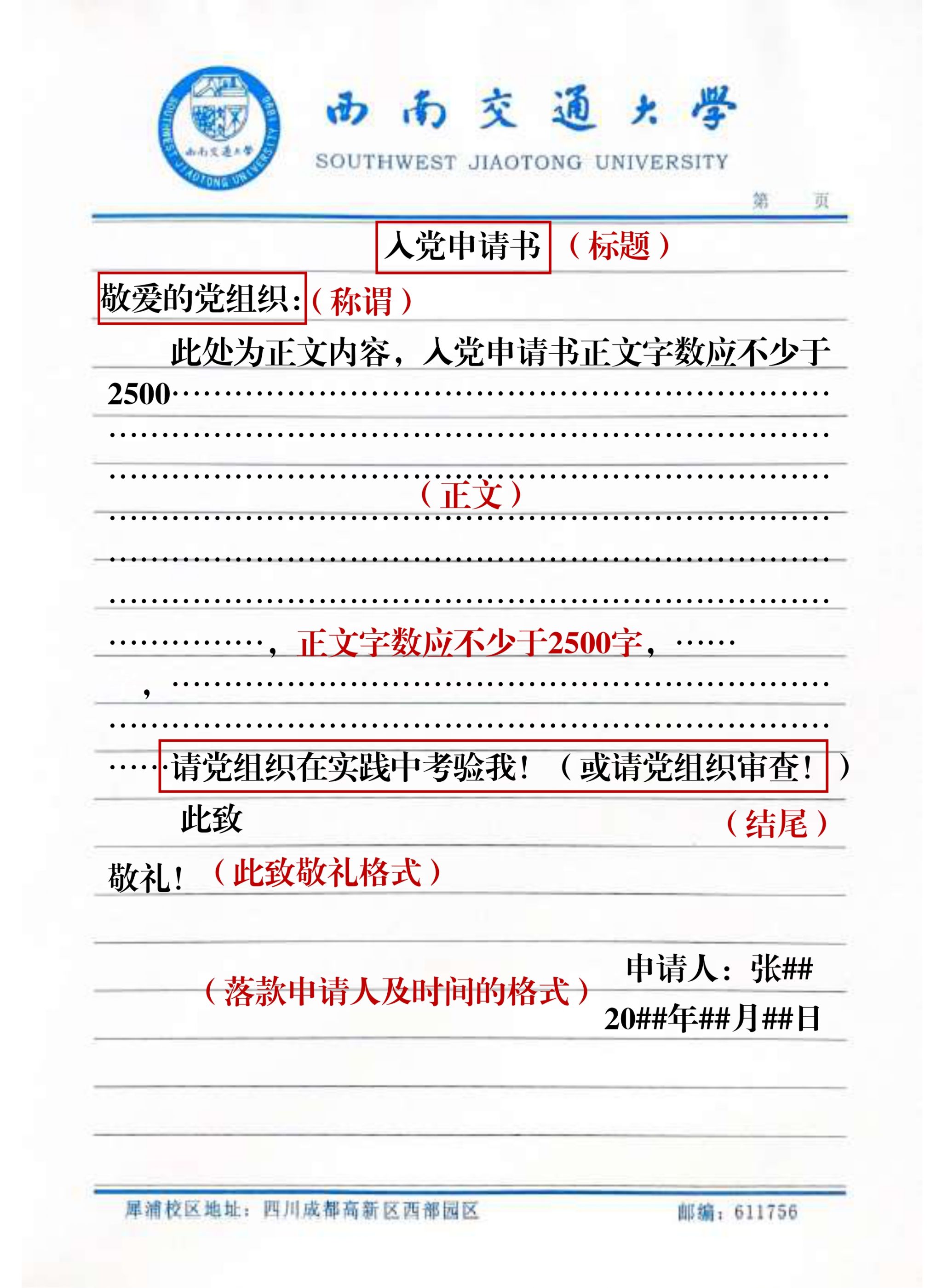 1.手写版:直接按照上述格式手写在交大信纸上即可