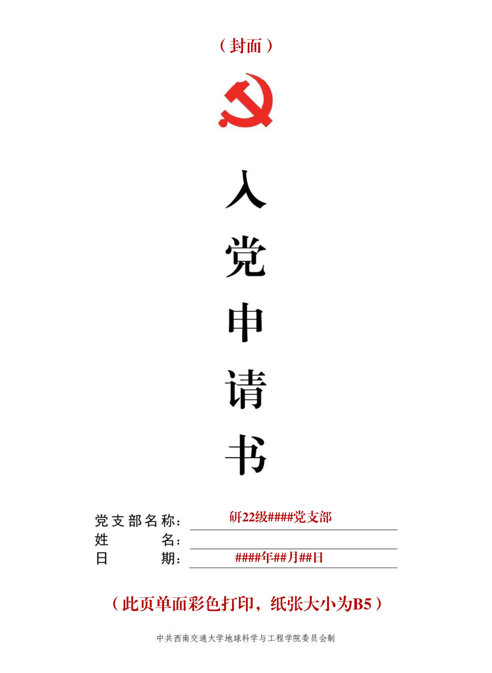 注:上述两种样式均可,但个人的同一套入党材料里所有封面的样式应保持一致。