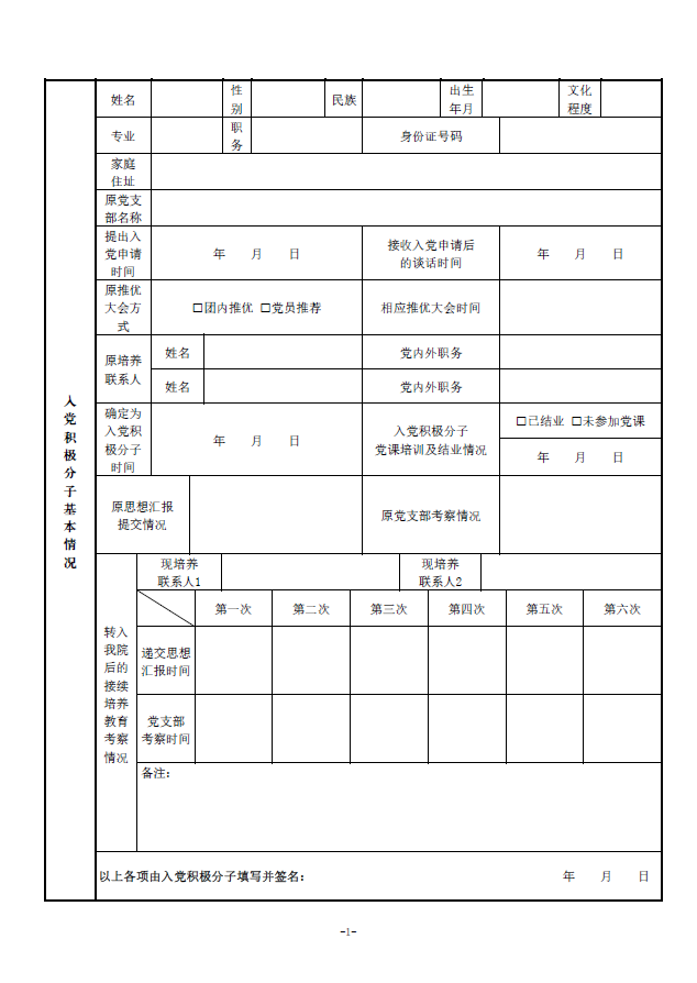 02:此版本适用于入党积极分子在外校(或校内其它学院)确定,后续由于研究生入学或转专业等原因,将入党积极分子身份转入我院的同学。(多见于研究生中或大二、大三转专业的学生中)