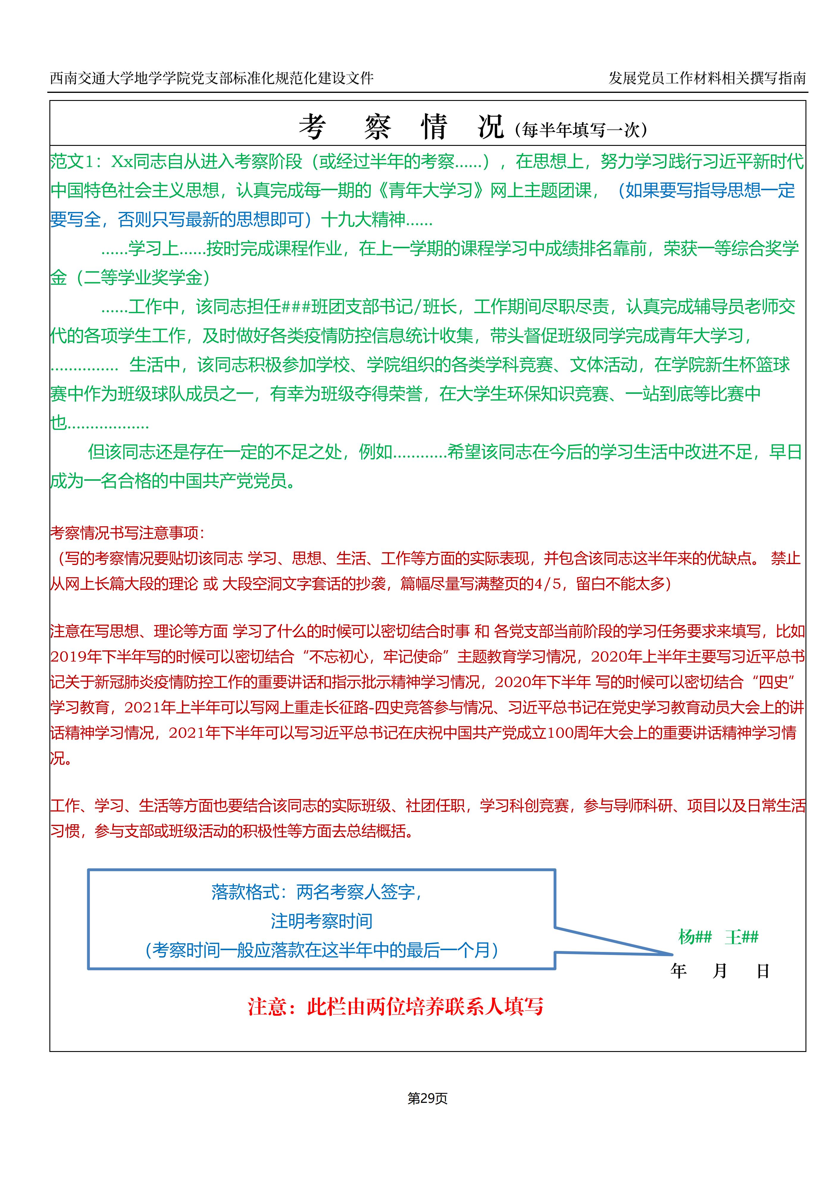 入党积极分子、预备党员培养教育考察登记表撰写指南: