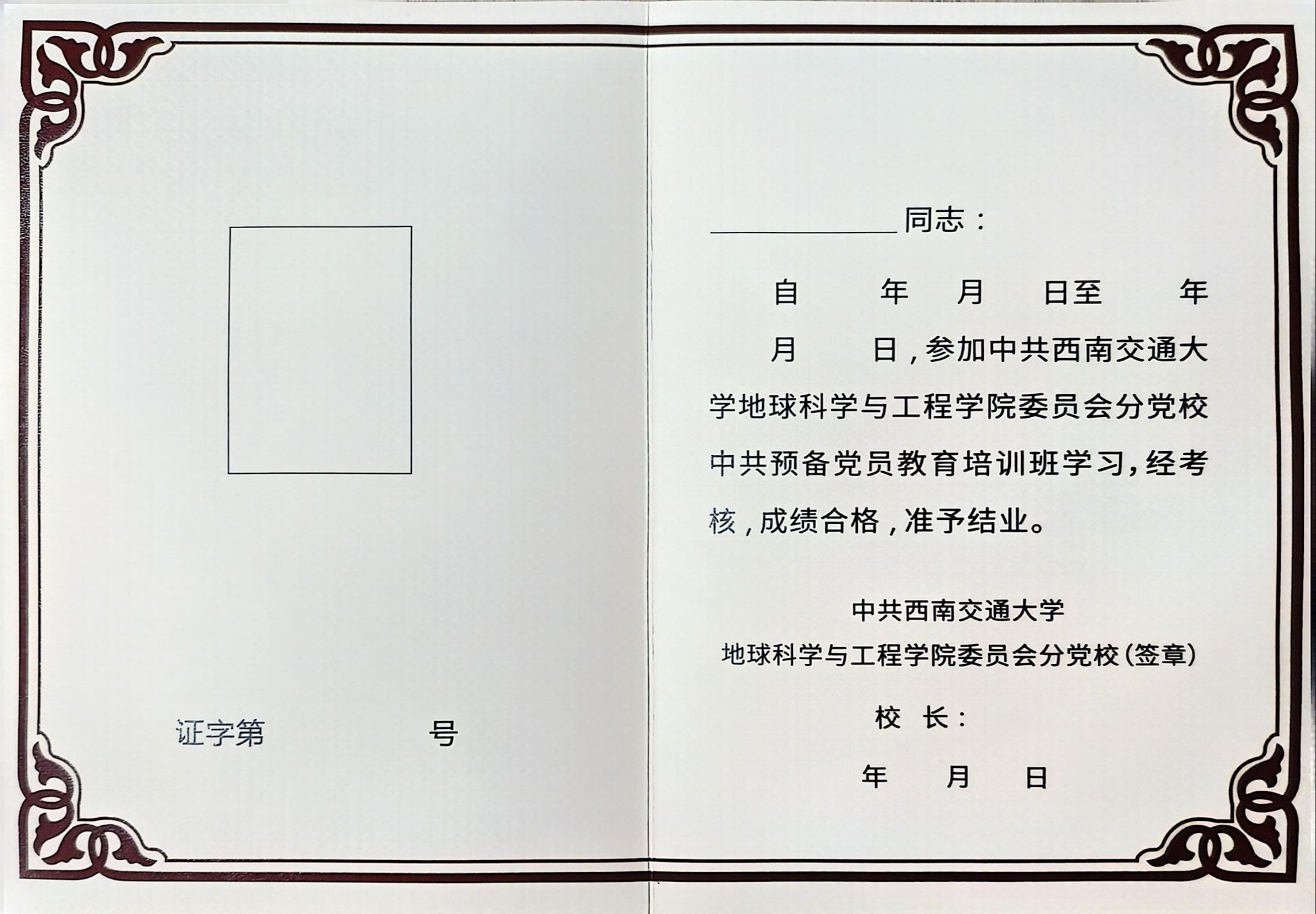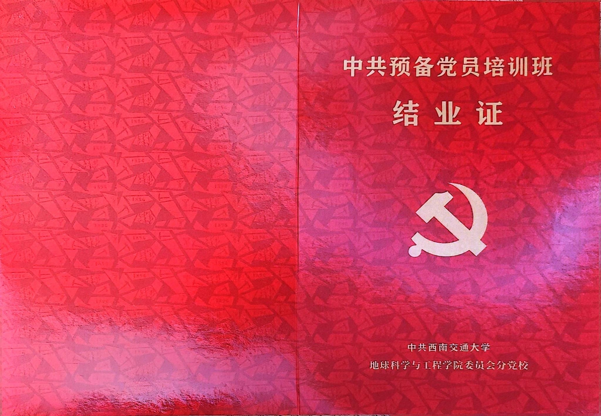 中共预备党员培训班结业证