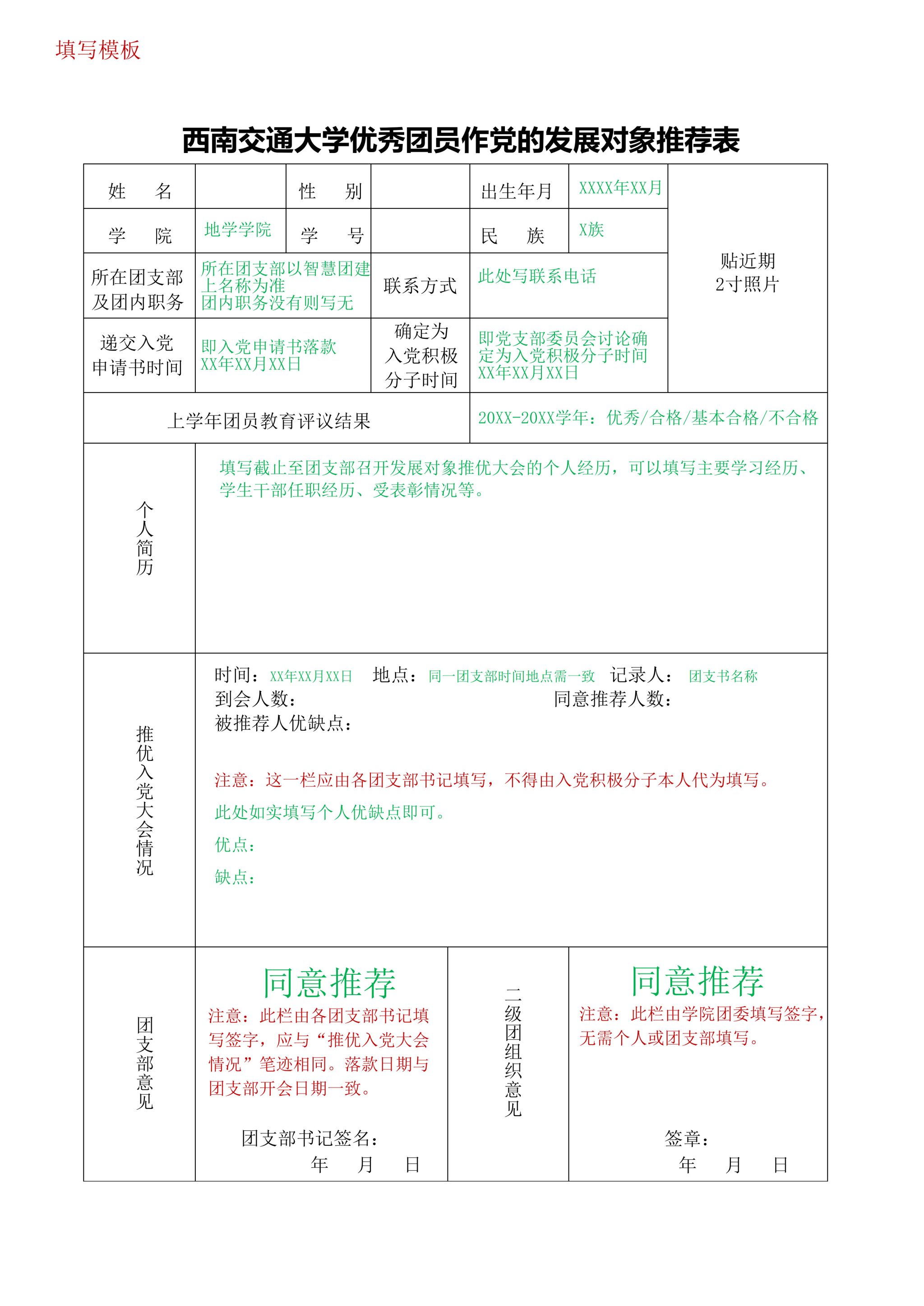 影巢 优秀团员作党的发展对象推荐表样例及撰写指南