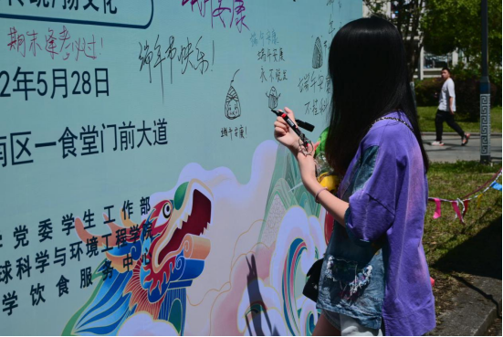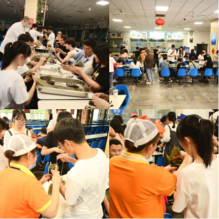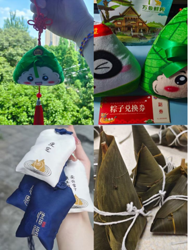 浓情粽意,纵享端午。同学们纷纷在桁架上留言,表达对端午节日的祝福和对美好生活的向往。此外,积极参与活动的同学们还收到了粽子兑换券、粽子玩偶、粽子挂件、五彩绳等精美小礼品,感受端午浓厚氛围。下午一点,在四食堂工作人员的耐心指导下,同学们一同学习包粽子,大家学得非常认真、非常起劲,同学们开心地向家人、朋友们展示自己包出的粽子,纷纷表示尝自己的粽子,别有一番风味并且分享给室友和朋友,送去节日的祝愿。
