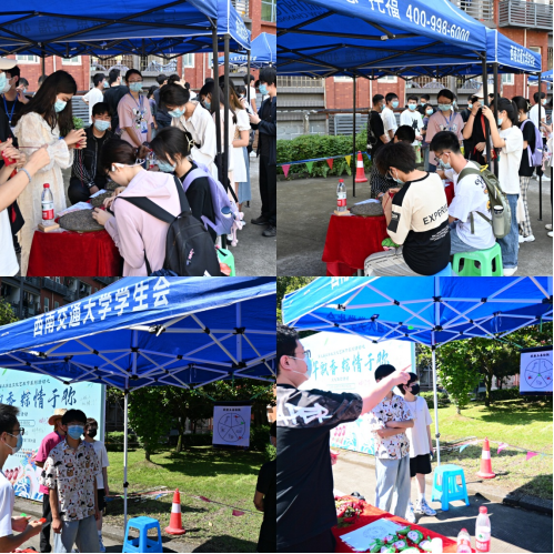 多日小雨的成都终于放晴,同学们内心的热情像天气一样,期待着活动的开展,甚至有跟工作人员一同早起排队的同学,不到十点,端午节文化体验活动的“小驿站”旁就排起了长长的队伍,大家满心欢喜等待活动开始。没过多久,许多同学都被吸引过来,在工作人员的指引下,同学们佩戴口罩、有序排队,切实做好疫情防控安全保障。