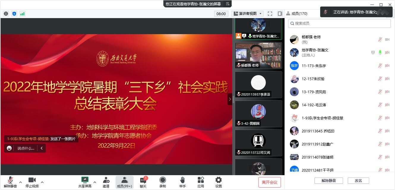 2022年9月22日下午13:30分,地球科学与环境工程学院2022年暑期“三下乡”社会实践总结表彰大会于腾讯会议线上顺利举行。影巢