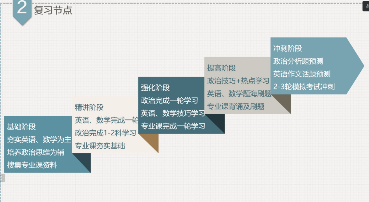 指导老师为大家整理了考研复习的系统性方法与规划,通过分划不同的阶段,针对不同阶段提出了不同的学习方式,帮助同学们更加高效的、更有序地进行考研复习。