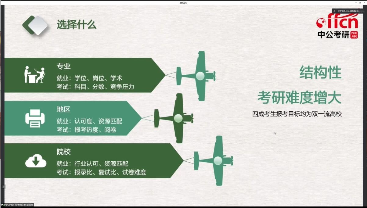 指导老师主要通过大量数据的展示分析对考研不同院校、地区和专业的就业率就业范围以及考研难度进行了总结分享,使得同学们在考研方向上不再迷茫。