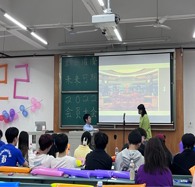 犀浦校区X4359教室开展了主题为“群‘新’璀璨,未来可期”的会员大会。大家以最好的状态欢聚在此,用节目汇演和互动游戏的方式增进了综合素质提升中心成员之间的凝聚力、拉近了成员之间的距离、提高了大家的默契程度。共同开启了2022-2023学年小粽子大家庭之旅。