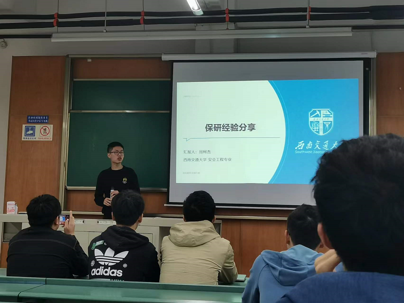 学习与科创中心邀请了彭俊岚与贺呈虎两位成功保研的优秀学长主讲保研经验。首先,彭俊岚从资源勘查专业角度出发,针对成绩要求、竞赛准备及保研流程三个方面进行了详细介绍。同时彭俊岚分享了多条切身经验,并以照片的形式分享了他自身的培训经历。最后,彭俊岚以诙谐的语言分享了他保研之后的生活及感受,并对同学们送上了美好的祝愿。