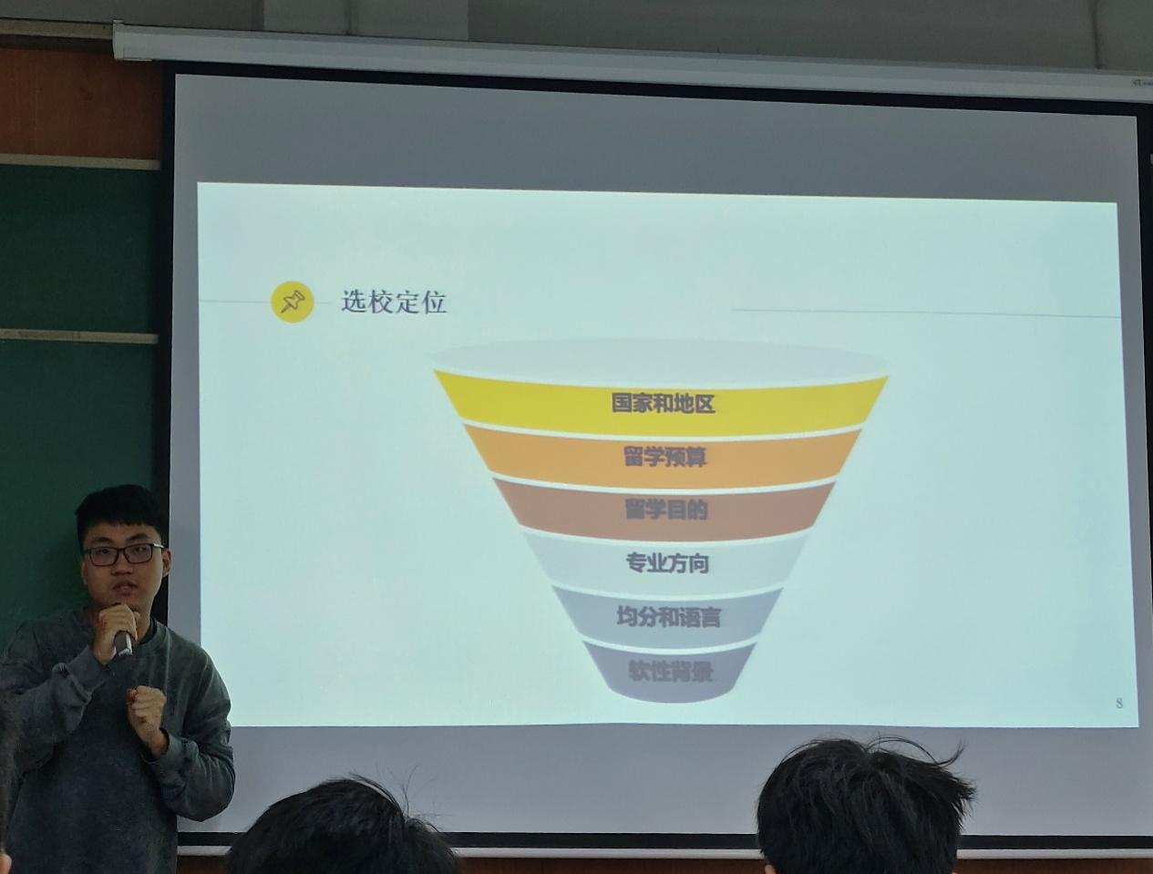 首先,刘欣宇从留学选校定位、留学优势、留学材料准备、留学具体流程四个方面为在场同学进行了细致讲解与分析。同时刘欣宇对留学,考研与保研做了一个多方面,立体性的比对,给出了个人建议。