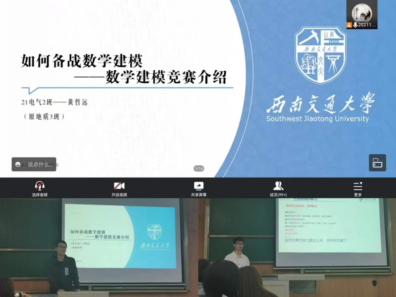 第一场讲座于10月22日晚在犀浦校区X4155线下线上同步进行。讲座主题为“数学建模竞赛经验分享”。影巢