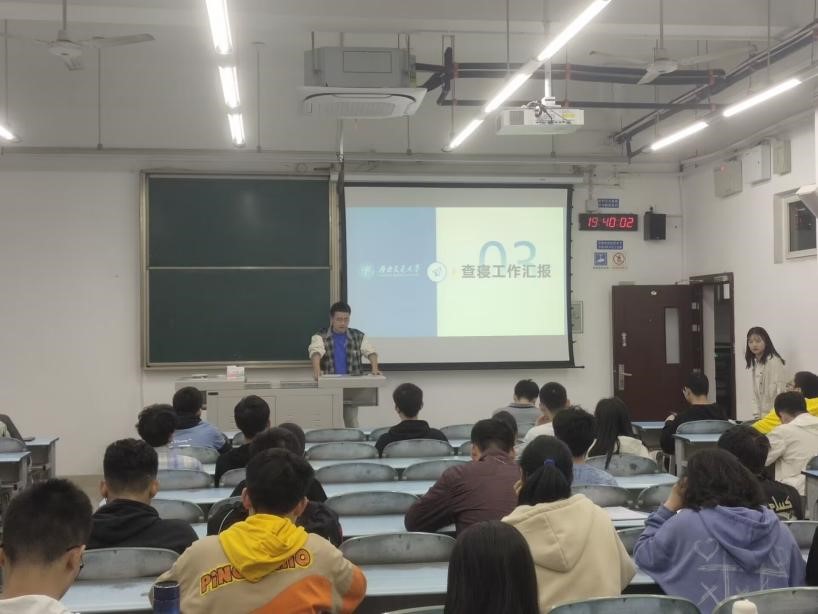接下来,学生会权益服务部彭路鹏就开学以来的查寝工作进行汇报,其表示寝室风貌总体情况良好,但仍然存在异味、杂物堆积、外卖垃圾处理不及时等问题。