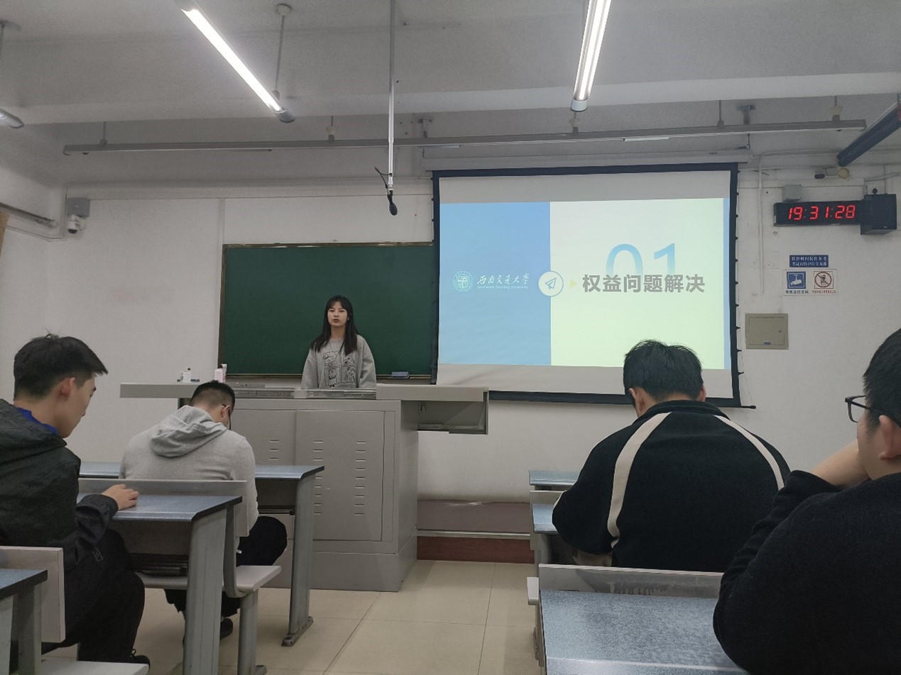 随后,学生园区与事务中心生活部副部长彭路鹏对收集到的部分权益提案进行集中回复和解答,给出了将先前调研收集到的结果向学校领导汇报反映后得到的反馈,针对问题给出了解决措施。