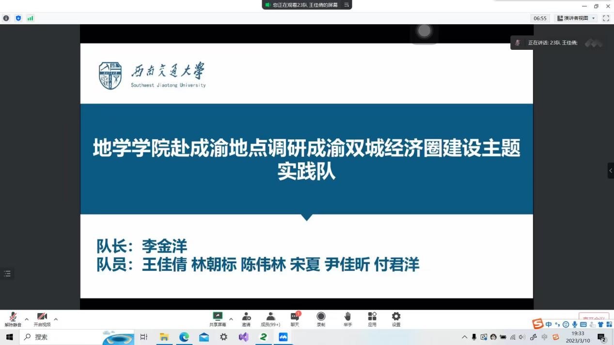 前往成渝的实践23队代表李金洋同学做出了对城经济圈建设成渝双的调研。