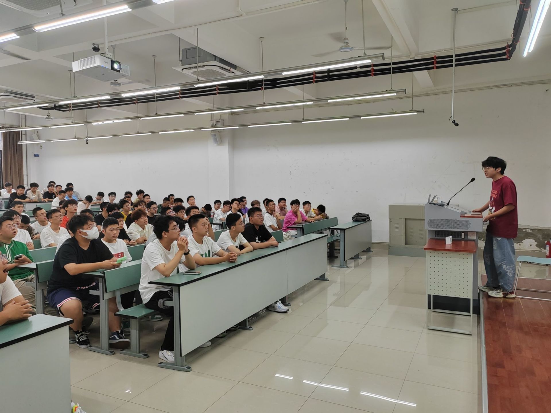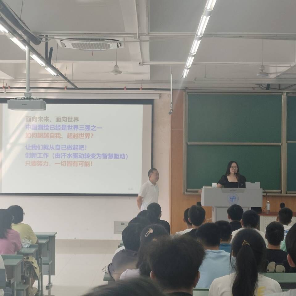 本次讲座由各专业老师及辅导员老师对专业特色以及大家关心的专业发展方向和就业前景进行了介绍。测绘专业朱庆老师为测绘新生介绍测绘专业的研究方向和发展前景,辅导员李婧老师为新生介绍测绘类在大学期间的学习经验、未来的就业方向等。