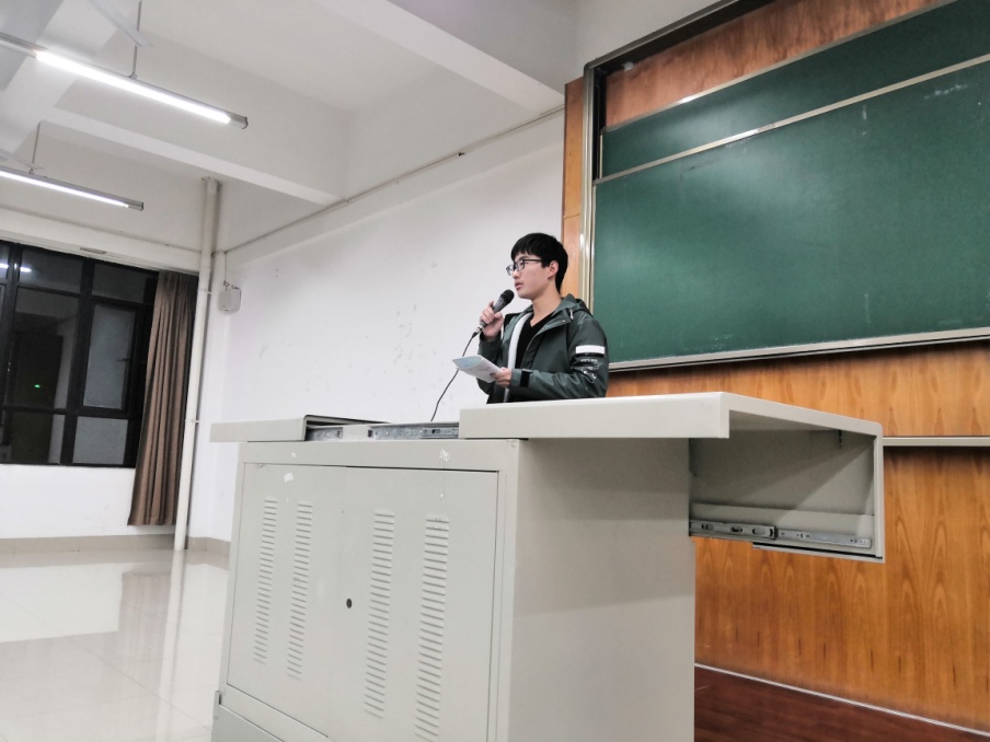 2019级谢舜尧同学为同学们分享学习英语的经验。谢舜尧强调了学习英语过程中词汇的重要性,并鼓励大家将词汇放到阅读中记忆,听力能力的提高没有捷径,大家可以多看TED演讲视频等提高听力水平。