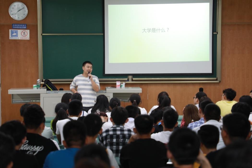 何杨谈到,大学相当于一个成人礼,学生的思想在逐渐独立,行为也发生着转变。何杨表示同学们在大学期间要加强自己的各方面能力、获取各种本领以满足以后工作岗位上的要求。其中何杨重点讲解到大学中相关的经济骗局,并表示同学们要擦亮眼睛,识破骗局,勿入其中。